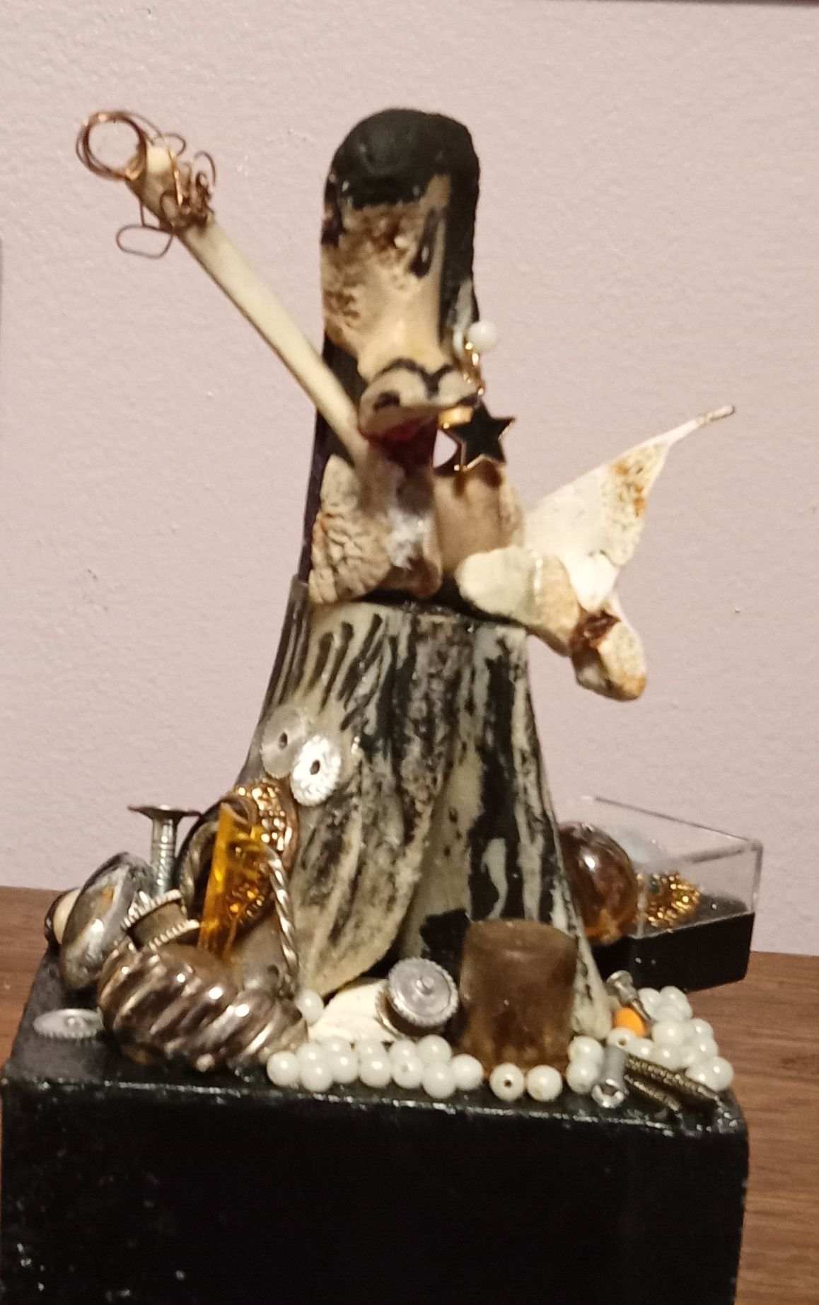 Created with bones from the kitchen. These items can be viewed and or purchased from the National Conference of Artist Michigan in Detroit or just contact Shirley Woodson.